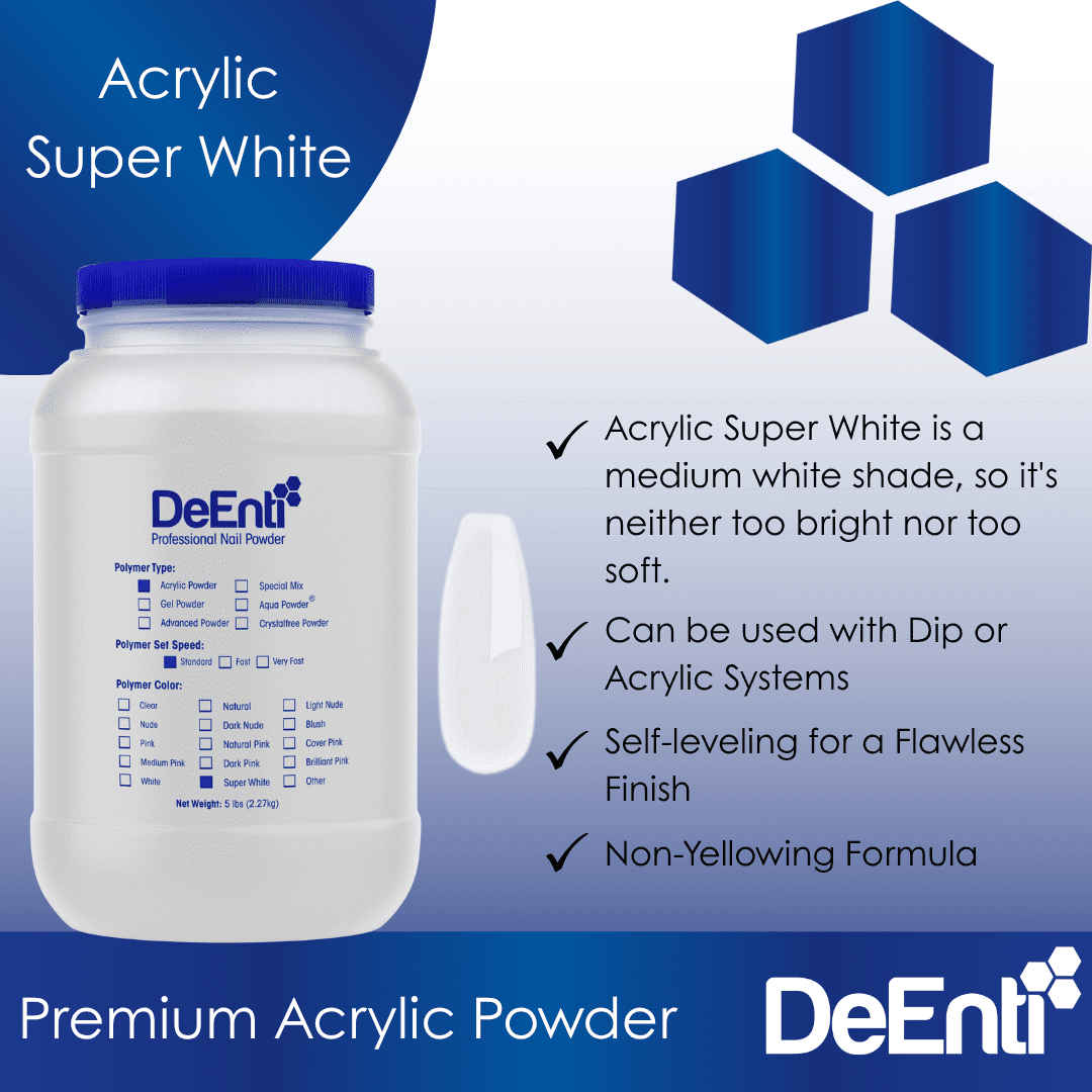 Our DeEnti Acrylic Powders are made with high-quality ingredients to ensure a smoother surface for creating beautiful nails. For the best results, combine them with Nomma plus, our all-in-one formula that works well with both acrylic and dip systems.