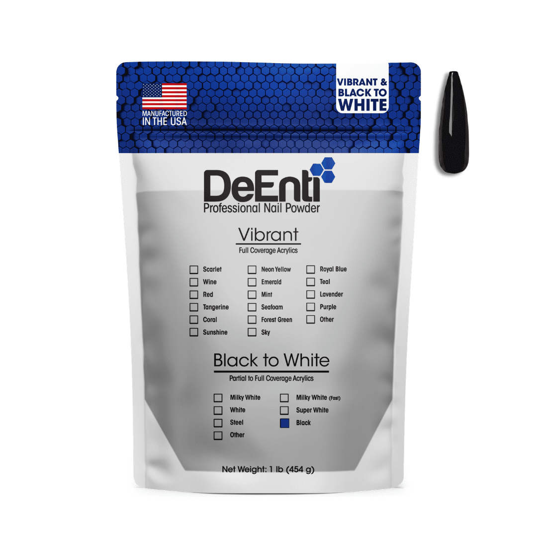 Sold by the pound (LBS). Our Black Acrylic formula offers a very dark black color, so no hints of blue or gray appear when applied. This highly opaque nail will not show through.