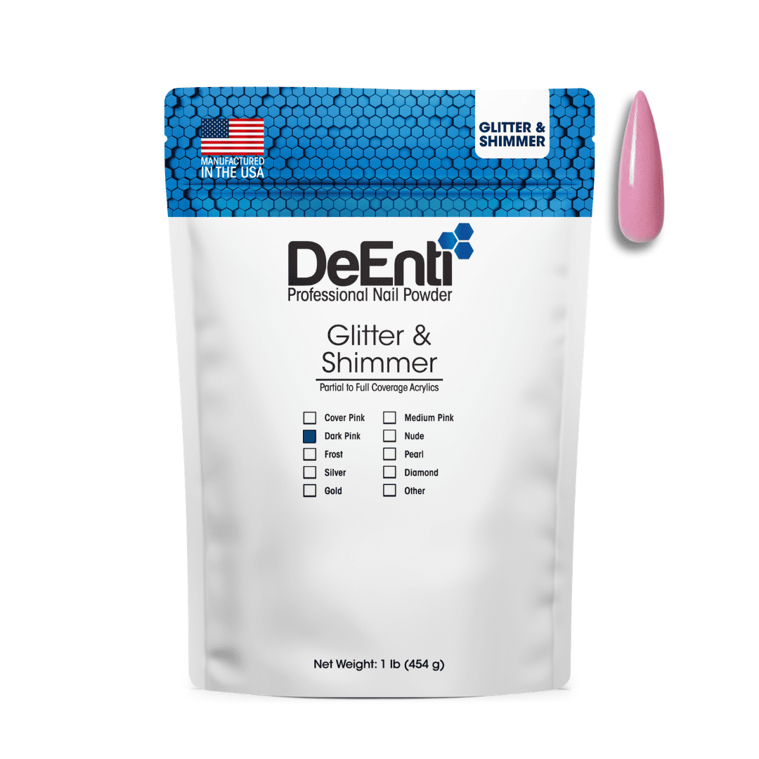 Sold by the pound (LBS). Our Dark Pink Shimmer Acrylic Powder is an enhanced version of our Dark Pink formula by adding a beautiful shimmer, delivering a bold, dark pink shade with an extra touch of glam.