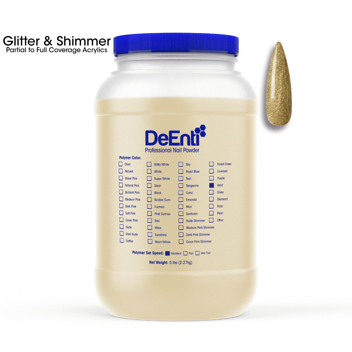 Sold by the pound (LBS). Gold Acrylic powder formula offers a stunning metallic gold tone. Its user-friendly mixture ensures a vibrant, eye-catching effect that will make your nails truly stand out!