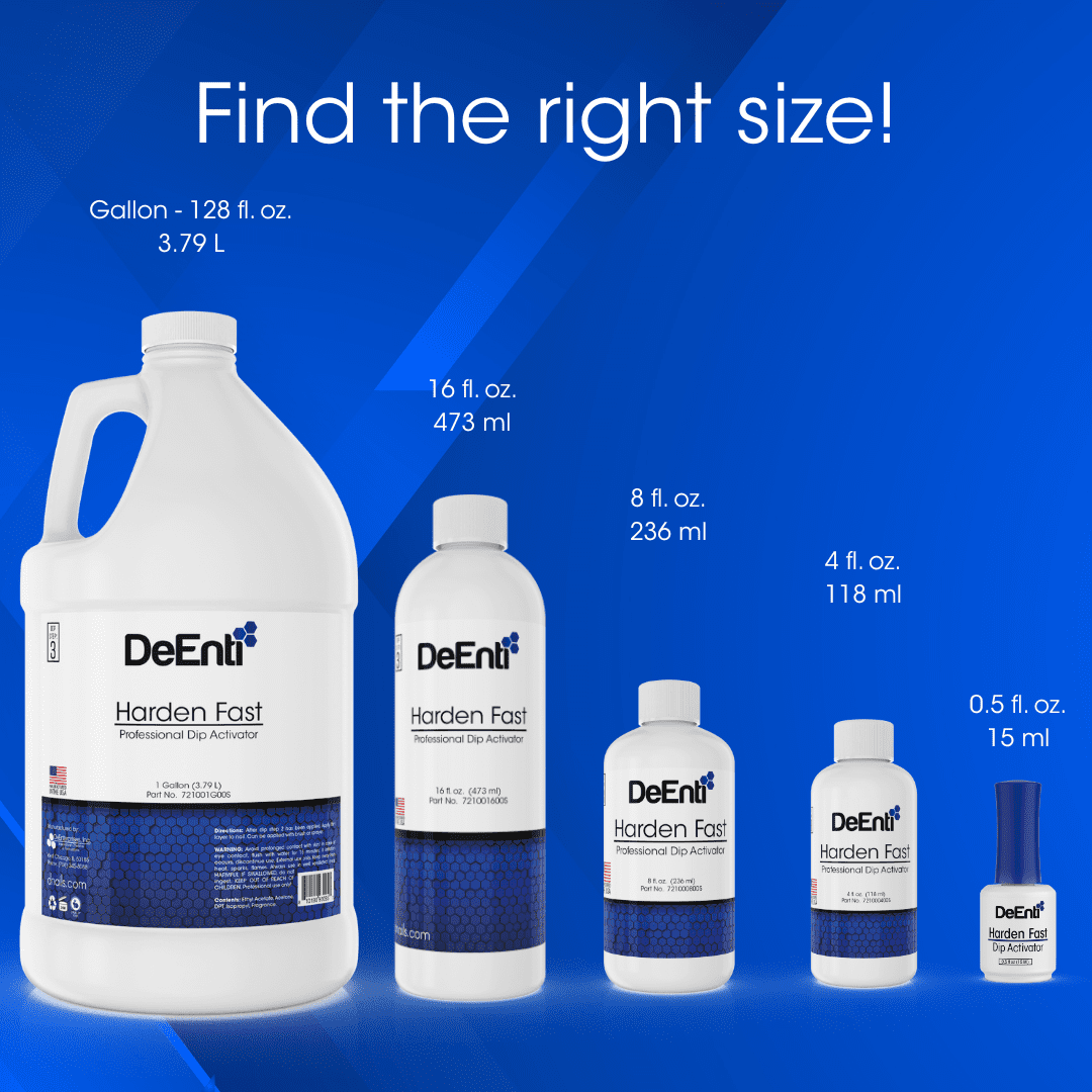 DeEnti Harden Fast Activator ensures each layer is secured, maintaining the hardness and strength of the nail. As Step 3 in any dip system, this activator hardens dip powder rapidly without the need for a light!